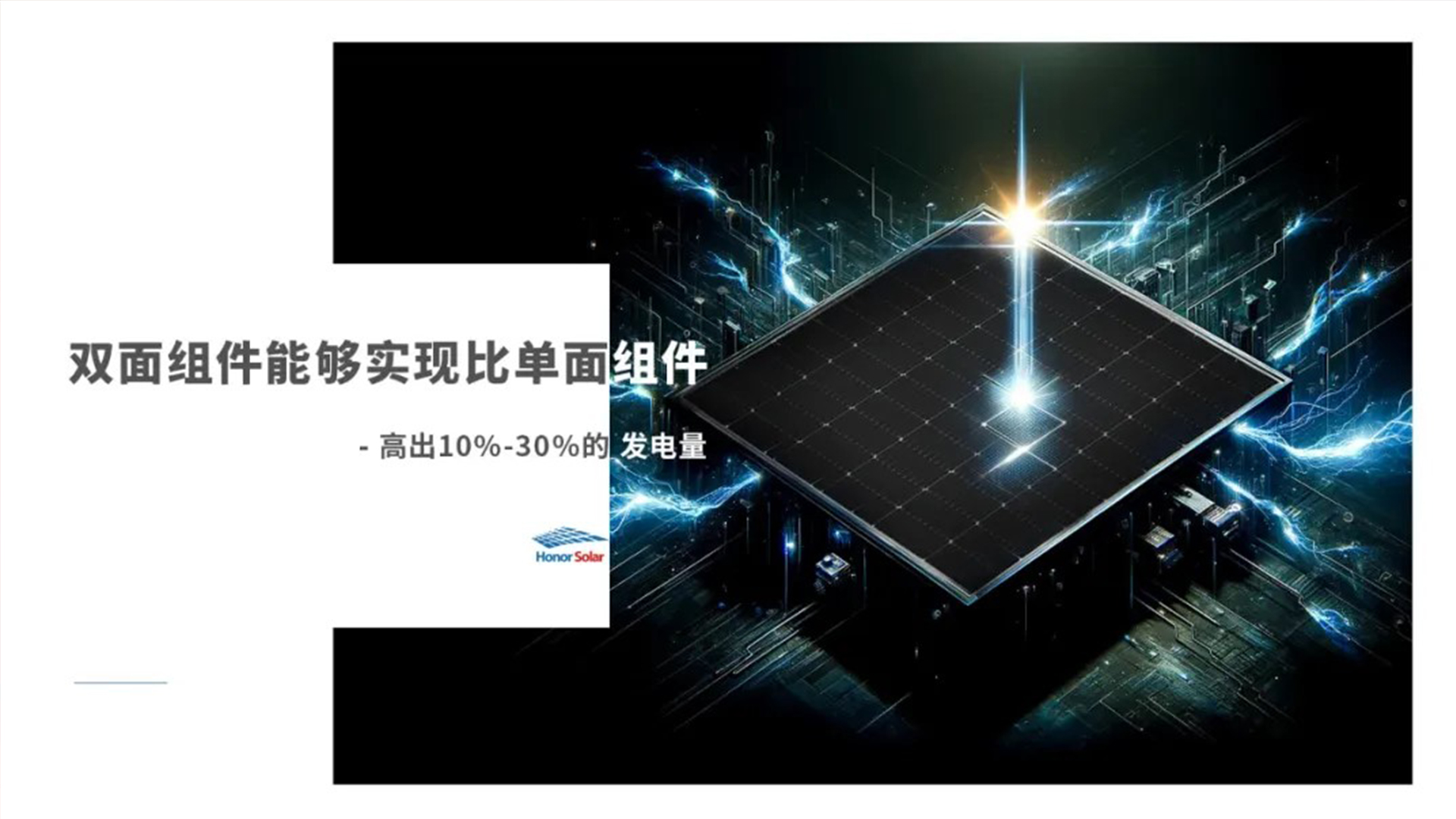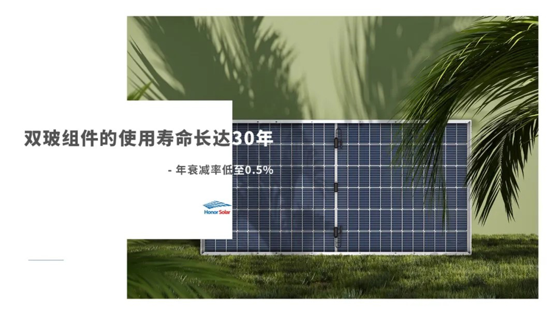 The 182N-type double-glass photovoltaic module being produced by HonorSolar has made a technological breakthrough. This double-glazed module not only generates electricity on both the front and back sides, but also is able to utilize reflected and scattered light in the environment to convert it into electricity. On different ground materials, the double-sided module can realize 10% to 30% higher power generation than the single-sided module. In addition, the double-glass module has a service life of up to 30 years, with an annual attenuation rate as low as 0.5%, showing its excellent resistance to wind, sand and corrosion, and adapting to a wide range of complex environments, such as coastal, desert and snow.